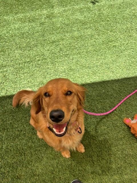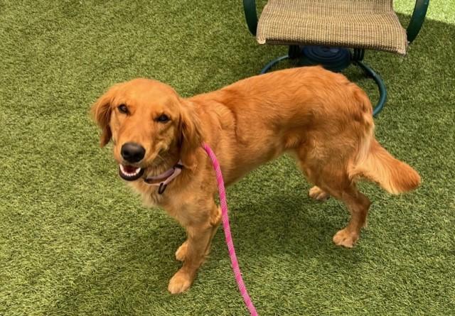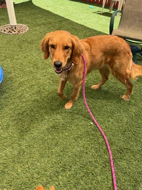 Betty is the darker, smaller Golden Retriever. Hannah is the lighter colored Golden Retriever.
