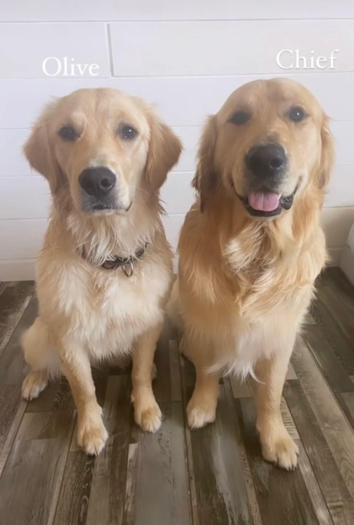 Both Olive and Chief know their basic commands and enjoy showing off their good manners. They absolutely love going for walks, spending quality time with their people, andâtrue to their Golden rootsâswimming whenever they get the chance.