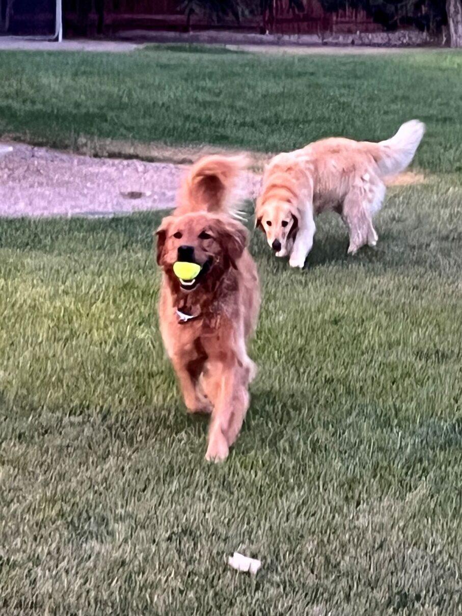 Meet Ruger (red) and Luna (lighter colored), a devoted duo of Golden Retrievers who are ready to bring twice the joy to one lucky home. These bonded best friends come with a solid foundation—they both know their basic commands and are eager to please.