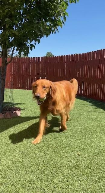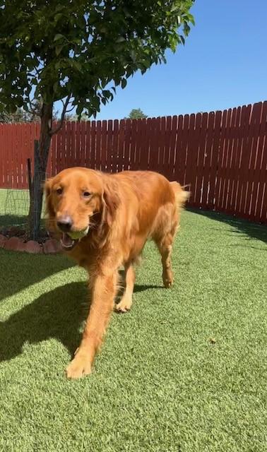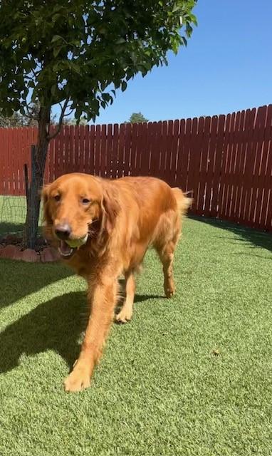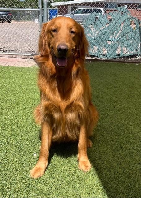 Dakota is a very handsome 1 year old male Golden Retriever. He LOVES to play with the other dogs. However he would NOT do well in a home with a small dog or a cat. He must go to a home with a 6 foot fence and with someone who is willing to commit to training this handsome boy. Dakota does know how to sit and he likes to play ball.