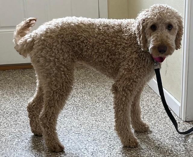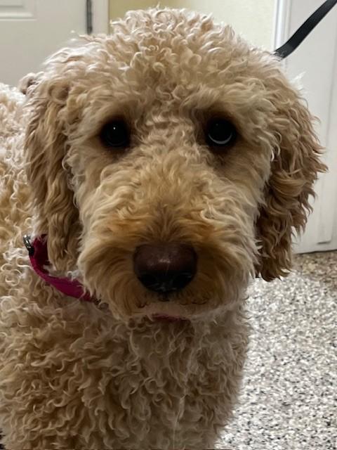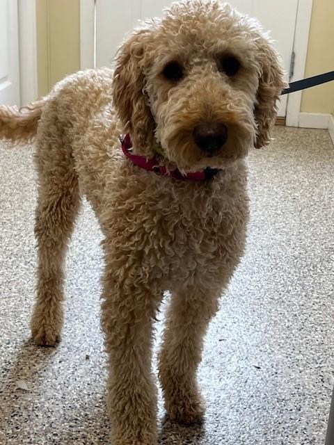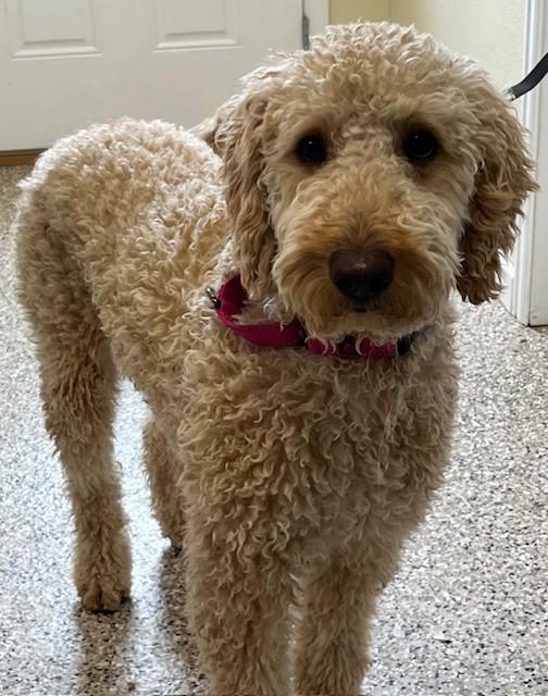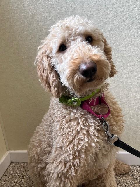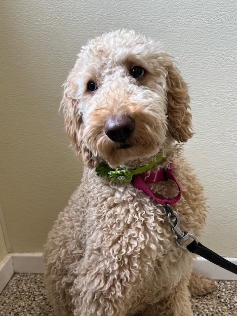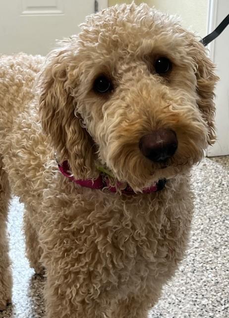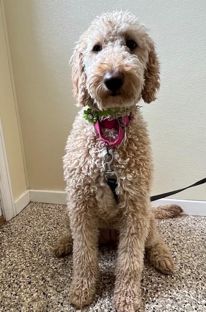 Macie is a 1½‑year‑old GoldenDoodle with a soft, non‑shedding coat and an energetic, joyful spirit. She came to us from a very loving home whose circumstances changed, and they wanted to ensure she could thrive in a place that fits her needs.