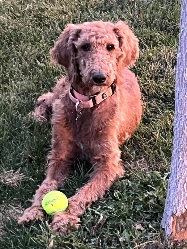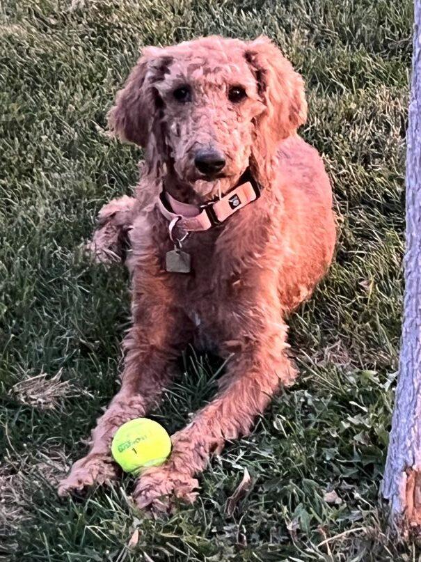 At just 45 pounds, Marci is a petite 4-year-old Goldendoodle whose gentle spirit has weathered more than her fair share of storms. Found as a stray and transferred from a shelter where she struggled to thrive, Marci is now safe in our care and slowly learning what comfort feels like.