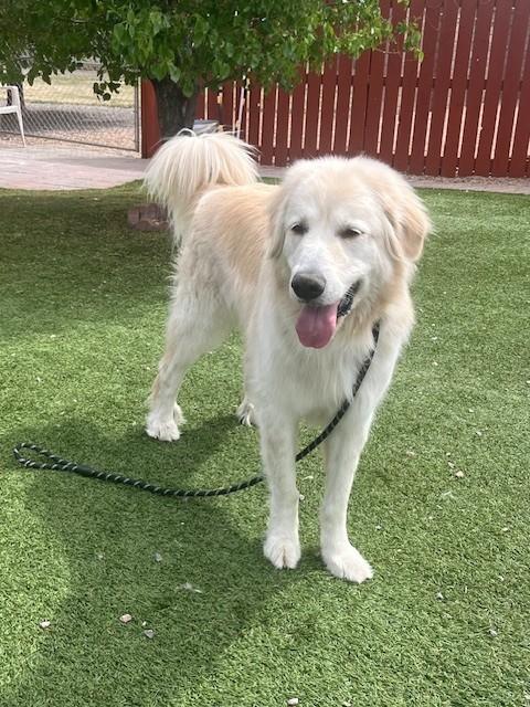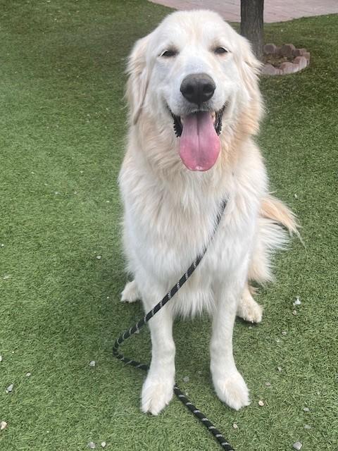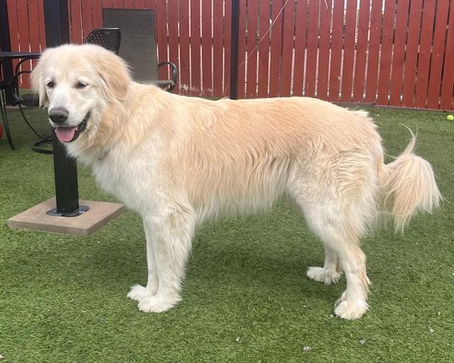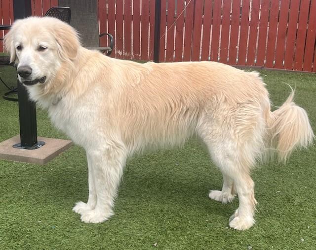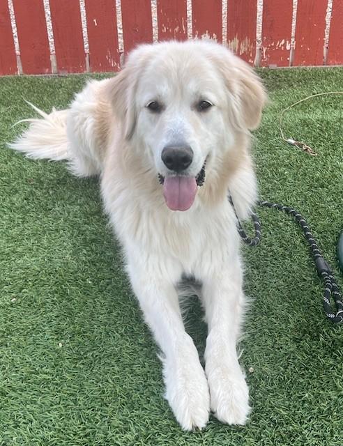 Maxie is a stunning 6‑year‑old Golden Retriever/Great Pyrenees mix whose good looks are matched only by his impeccable manners. This sweet boy knows an impressive list of cues — sit, shake, lay down, roll over, spin, and even bark on command. He truly aims to please.