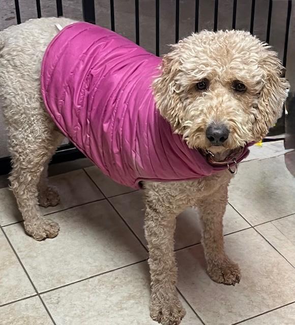Oakley is a 5‑year‑old Goldendoodle with a tender heart and a naturally timid spirit. She’s still discovering what it means to feel safe, loved, and free to be a dog, and she blossoms most when she has another confident canine by her side. A well‑adjusted dog in the home will be her guide, her teacher, and her source of courage as she continues to learn the rhythms of family life.