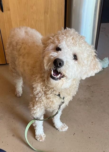 Wally is an 18-month-old mini-Goldendoodle with a playful spirit and a heart full of love. This curly-coated cutie is not just adorable—he’s also smart! Wally knows his basic commands like sit, stay, down, and leave it, and he’s eager to please.